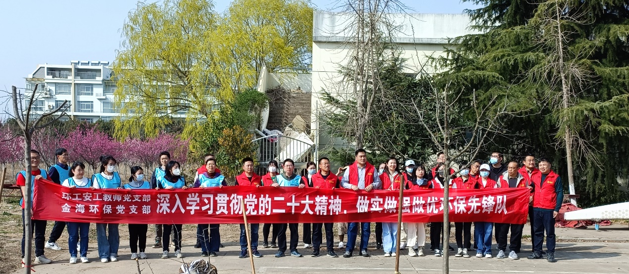 習(xí)近平總書記在黨的二十大報(bào)告中指出,推動(dòng)綠色發(fā)展,促進(jìn)人與自然和諧共生。必須牢固樹立和踐行綠水青山就是金山銀山的理念,站在人與自然和諧共生的高度謀劃發(fā)展。為全面貫徹落實(shí)黨的二十大精神,迎接我國(guó)第45個(gè)全民義務(wù)植樹節(jié),3月9日下午,環(huán)境與化學(xué)工程學(xué)院環(huán)工安工教師黨支部聯(lián)合連云港市城建控股金海環(huán)保黨支部,在學(xué)校的櫻花園旁共同開展了“深入學(xué)習(xí)貫徹黨的二十大精神,做實(shí)做強(qiáng)做優(yōu)環(huán)保先鋒隊(duì)”校園植樹主題黨日活動(dòng)。