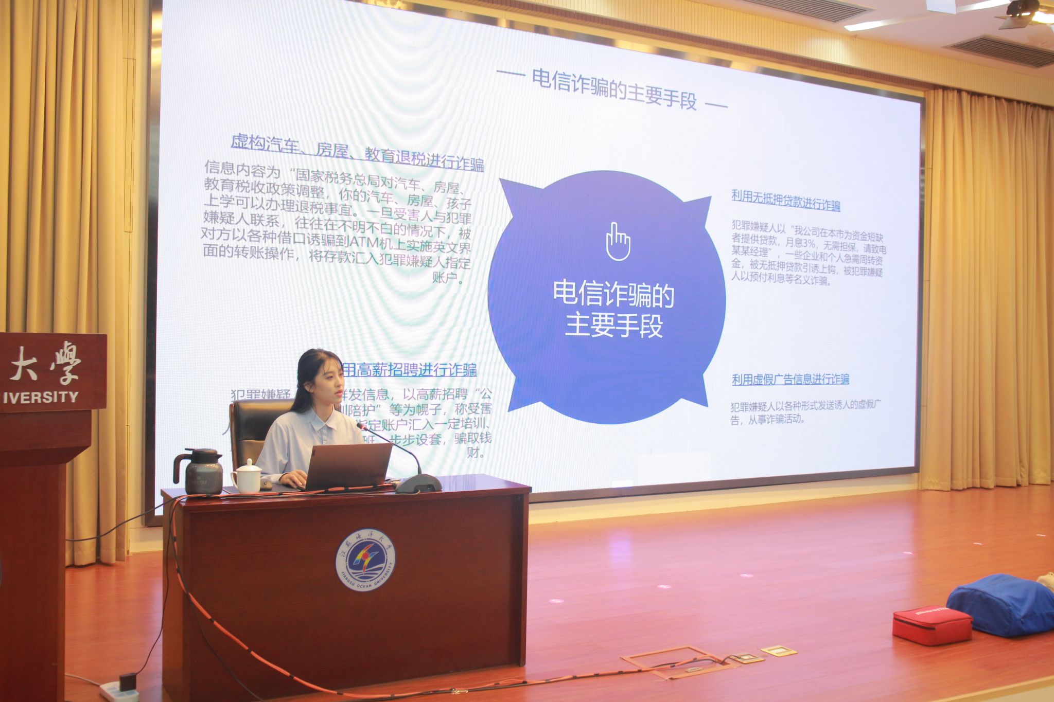 會上,防詐專員許月為同學(xué)們帶來了題為《預(yù)防電信詐騙》的精彩分享。她結(jié)合當(dāng)前高發(fā)的電信網(wǎng)絡(luò)詐騙典型案例,詳細(xì)講解了如何識別和防范各類詐騙手法,并強(qiáng)調(diào)要牢記“三不一多”原則,提醒同學(xué)們務(wù)必做到“不聽信、不透露、不點擊、多核實”,時刻保持警惕,守護(hù)好自己的財產(chǎn)安全。