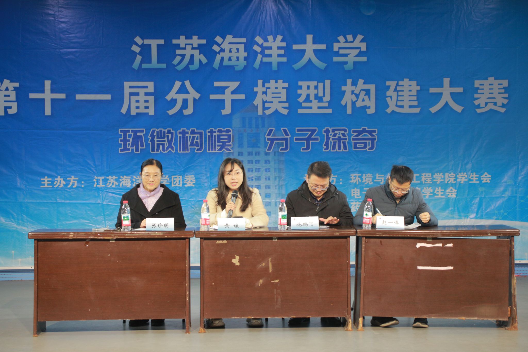 11月21日,江蘇海洋大學(xué)第十一屆分子模型構(gòu)建大賽決賽在興海樓二樓活動(dòng)廳舉行。校團(tuán)委副書記黃媛,環(huán)境與化學(xué)工程學(xué)院張珍明教授、施鵬飛教授、趙一博副教授等四位老師擔(dān)任大賽評(píng)委,學(xué)院黨委副書記王靜、團(tuán)委書記程藝出席活動(dòng),來(lái)自各學(xué)院的15支優(yōu)秀團(tuán)隊(duì)展開巔峰對(duì)決。